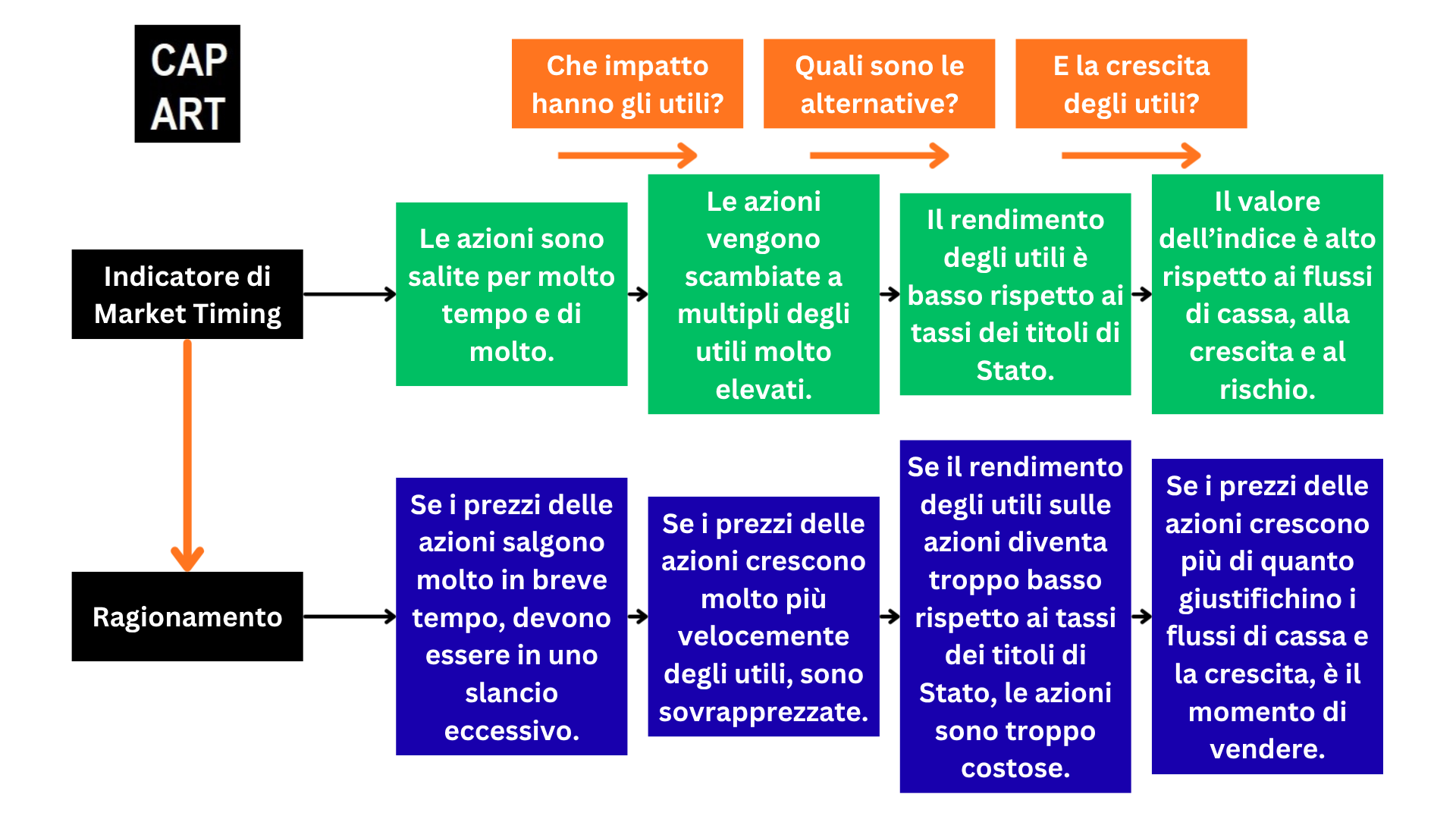 Quindi, seguendo il primo livello del nostro schema, e per rispondere alla prima domanda che ci siamo posti: sì, siamo al punto in cui le azioni sono salite molto e per un periodo piuttosto prolungato. Il che ci porta naturalmente al secondo livello di analisi.